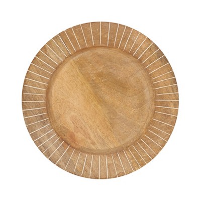 The Fluted Wood Charger Plates are the perfect finishing touch for your place settings. They give your dinnerware a stylish rustic accent by adding a bit of ribbed texture and distressed finish. The design and light, natural color helps elevate your favorite dinnerware.