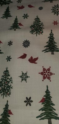 [This review was collected as part of a promotion.] The Christmas Long table runner with trees and snowflakes arrived safely and is so beautiful on my table. It's an off-white color with green trees and multi colored snowflakes. The fabric is thick and really durable. I don't think it will shrink if it ever needed washed. It's just beautiful.