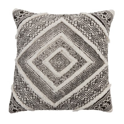 Saro Lifestyle Saro Lifestyle Tufted Block Print Decorative Pillow Cover, Black, 18"
