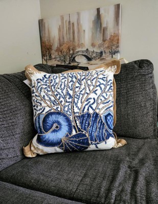 Create a breezy, tranquil space with a seashell-printed pillow. Features classic square shape, crisp cotton and contrasting trim.