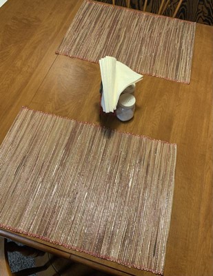 [This review was collected as part of a promotion.] I love these placemats! They're kinda orange and rust and gold all mixed in together. Makes my table look so pretty! I live in an apartment, so I don't have a ton of room to decorate without looking cluttered, so these bring color in