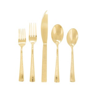 - Set includes: 1 dinner fork, 1 salad fork, 1 dinner knife, 1 soup spoon, and 1 teaspoon
