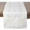 [This review was collected as part of a promotion.] I was so excited find this beautiful table runner. The embroidery is so lovely and it will make a wonderful addition to my holiday table. The snowflakes are so pretty and I can leave it on the table all winter. It is long enough fit across my table when it is open all the way with both leaves in, and it fits perfectly. It will also look great with my poinsettia too!
