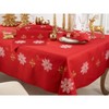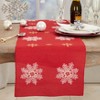 [This review was collected as part of a promotion.] This table runner is a beautiful deep red and is the perfect addition for decorating my dining room table for Christmas. The length works well for my large table and I love the gold sparkly thread they used in the snow flakes.
