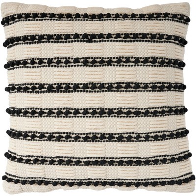 Saro Lifestyle Sophisticated Duo-Tone Stripe Poly Filled Pillow, Black, 20"x20"