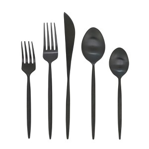 Supremely sleek and effortlessly chic, this Black Stainless Steel Flatware Set adds a unique look and feel to your tabletop décor. The minimal style allows you to coordinate with a wide assortment of dinnerware and table linens for versatility and range. Whether within a rustic setting, or modern and contemporary, this flatware feels right at home and helps transform any dining experience into a special and memorable occasion.
