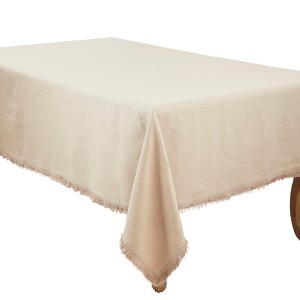 Saro Lifestyle Stonewashed Linen Fringed Tablecloth - 1 of 3