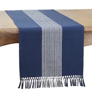 [This review was collected as part of a promotion.] This 100% cotton table runner was just what I had been looking for. I have an open-concept living space in my apartment and I needed something for my dining table that would tie in the colors in my living room... Enter Saro table runner! The runner looks great on my marble table-top and is easily dressed up for more formal needs, but I can also pare it down for a more casual look. The elegant shade of solid blue paired with the stripe gives the runner an elevated look that I love! I will note that I hand wash my runner in cold water and hang dry finishing it off with a quick run under my iron.
