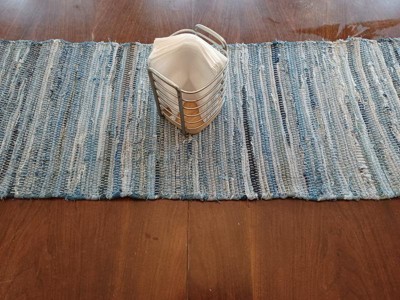 Bring modern vibes and effortless chic style to your décor with this hip Denim Chindi Table Runner. Featuring shades of washed out denim, the woven construction creates a unique striped pattern. Adds soft color to your tabletop foundation and create a memorable dining experience for all guests. Coordinate with the matching placemats for a cohesive look or add contrasting neutrals for a balanced visual statement.