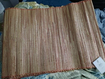 [This review was collected as part of a promotion.] I love these placemats! They're kinda orange and rust and gold all mixed in together. Makes my table look so pretty! I live in an apartment, so I don't have a ton of room to decorate without looking cluttered, so these bring color in