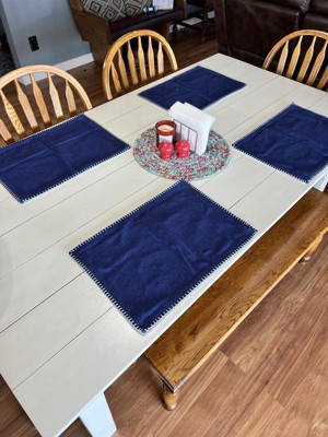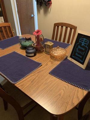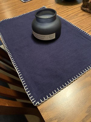 [This review was collected as part of a promotion.] My new navy blue Whip Stitched Design placemats are a perfect lowkey everyday use placemat. They look nice and protect my table from the dishes. They also wash well. Meaning they haven't unraveled or got all bent outta shape.
