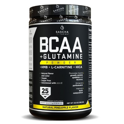 Sascha Fitness BCAA 4:1:1 with Glutamine, HMB, L-Carnitine, HICA | Natural Grape Flavor 12.8 oz