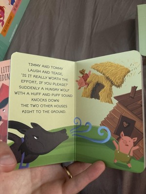 I was excited to give these to my daughter for her birthday but before wrapping them I open a few of the books to look. All of the books are only 5 pages long with way too much text on each page with a weird and pointless rhyming scheme. Memorable quotes like "I'll huff and I'll puff" in the three little pigs is missing as is "too big, too small, just right" in Goldilocks. Overall this purchase was a mistake and if I'm able to return it I will.