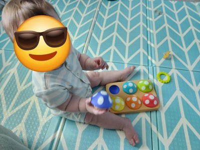 Baby loves it! The rattle inside the mushrooms is great