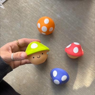 - Mushrooms are easy to grasp & shake, with soft teethable tops.