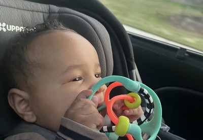 I was looking for toys that will help my baby be distracted while in the car. My baby loves the ball and stops crying when I spin the spinner.