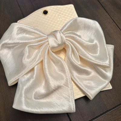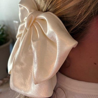 [This review was collected as part of a promotion.] Beautiful bold and stylish. This satin bow is large and in charge. I love that it is stylish and can go with almost any color outfit. It has an easy alligator class that makes it simple to open and close. Because this is a neutral color it is the perfect bow to pack on a weekend trip to match all of your outfits. This bow can be used for kids teens or adults. Overall I would rate this a 10 out of 10 I received an incentive to write this review.