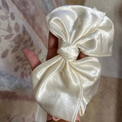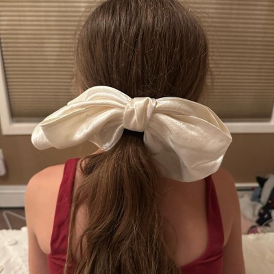 Complement your outfits with the Satin Bow Hair Barrette from A New Day™. This ivory hair barrette is designed in the shape of a bow for a beautiful look that suits everyday wear as well as parties and special occasions. Made of shiny satin fabric, this barrette helps secure and style all types of hair.