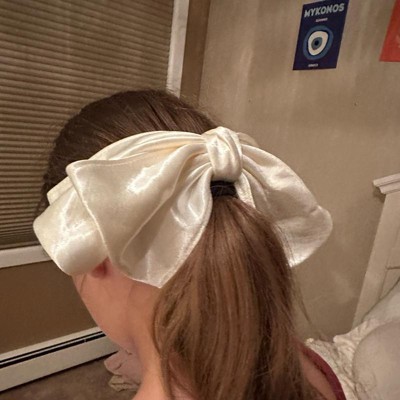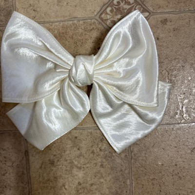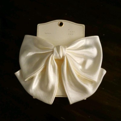 [This review was collected as part of a promotion.] I bought this bow as a gift for my teenage daughter. We were not expecting it to be so big but it is really pretty and ads a girly accessory to her wardrobe. The color is slightly off white or cream with a satin, shiny finish. The bow has a really strong large clip to hold it securely in your hair. We are really happy with this hair bow. Excited to see it paired with her cute dresses I received an incentive to write this review.