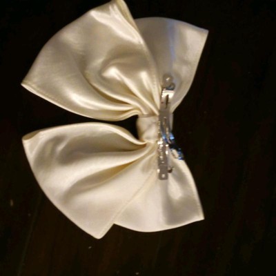[This review was collected as part of a promotion.] I got this bow for my 11-year-old daughter and it’s even prettier in person. The size is perfect – and is not too small where it’s lost in her hair but not so large that it feels overwhelming. The satin material gives it a polished look and the ivory color works with almost any outfit. The clip itself feels secure, which is important since she has thick hair. It can be worn casually or with a nicer outfit. I received an incentive to write this review.