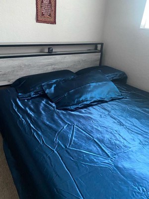 Beautiful deep blue silky satin sheets