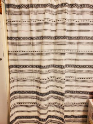 - Geo Stripe 2-tone decorative woven designs Fabric bath Shower Curtain 70x72". Black/Beige.