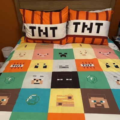 These are not as pictured! The white sheets are okay. The problem is that the colors of the TNT shams and the duvet cover are JUST WRONG! The parts, like the TNT, should be red and are orange. If you are a Minecraft super fan, you will be disappointed.