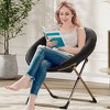 Saucer Folding Chair, Comfy Faux Fur Chair with Metal Frame, Soft Plush Moon Chair, Reading Accent Chair for Bedroom, Living Room, Dorm, Black