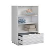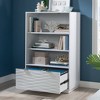 With fresh, clean modern lines and its pristine appearance, the white bookcase with drawer from the Morgan Main® collection will be a bright spot in your home office ensemble. This white storage bookcase has two adjustable shelves providing versatile storage and display options for your collection of novels, photos, home décor, photo albums and more. For additional storage, this white display bookcase has a lower file drawer with full extension slides that will hold either letter size or legal-size hanging files. Featured on the front of the filing drawer is exquisite, deep sculpted ribbons of texture that flow along the surface of this white bookcase with storage, exuding elegance that will elevate your décor to contemporary perfection. Accented with gold hardware for a sophisticated pop of glamour, this white 3-shelf bookcase radiates a timeless, dignified, and elegant opulence that will elevate your living room, bedroom or home office décor.