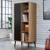 If you are looking for a multifunctional option that provides storage and display, say 'hello' to this storage cabinet with door from the Ambleside® collection. This modern storage cabinet features two fixed shelves and four adjustable shelves to accommodate a variety of items. Customize your living room storage cabinet to display or store books, home décor, organizing bins with craft supplies, picture frames, and so much more. It includes a decorative door with geometric fluted design, so items can be hidden and stored out of sight if you wish. Display the best and forget the rest with this 4-shelf storage cabinet. Detailed with spindle legs and finished in a warm Serene Walnut™ finish with black accents, this stylish wood cabinet spruces up any room with a modern design and multifunctional use. We hope you like what you see. Sauder designers travel the world and bring back the best and latest in style, finish, and color trends. This inspiring world travel is evident in the cutting edge and innovative furniture solutions we offer to you!