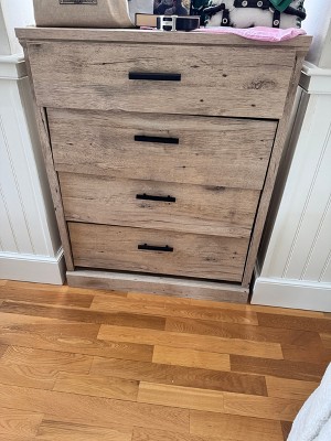 Sauder Aspen Post 4 Drawer Dresser Prime Oak: Bedroom Storage, Metal Frame, Spot Clean