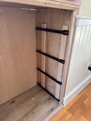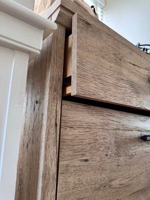 I’d rate it less than 1 star if I could. Terrible quality, cheap drawer glides, none of the factory drilled holes are aligned. I’ve taken it apart, put it back together, drilled new holes and STILL it looks like this. Total garbage. Now I have no clue how to return it given I’ve spent hours putting it together