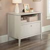 How do you pick out the best lateral filing cabinet to fit your needs? If you only need a single drawer option, look no further than this 1 drawer lateral file cabinet from the Larkin Ledge® collection. This file cabinet features a spacious drawer with full extension slides that holds letter or legal size hanging files. Your most important documents are never far out of reach and will stay organized. A lateral file cabinet with shelf below the top surface is the perfect place for books, binders, or other home office essentials. Finished on all sides for versatile placement in any room of your home, this legal-size filing cabinet will look great no matter how you arrange it. For added styling, the top features an edge-captured decorative molding, and the top surface and drawer front feature a decorative hexagon pattern. Accented with tall, tapered legs and finished in a clean Glacier Oak®, this 1 drawer filing cabinet makes storing your files easier than ever. And its straight-forward, classic look will blend in nearly any décor.
