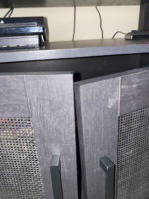 Just put this together and the doors will not meet up when closed. There is about an inch gap. No info on how to adjust this. Need more info on installing the doors to address this issue. It is a decent looking cabinet for the price.