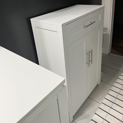 Increase storage space in your bathroom or kitchen with the Savannah Storage Cabinet. Featuring two adjustable shelves and a large storage drawer, this compact cabinet can accommodate a variety of household items. Simple and stunning, the Savannah Storage Cabinet casts a high-end silhouette with Shaker-style recessed panels. Add this cabinet to any room of the home for an organizational upgrade.