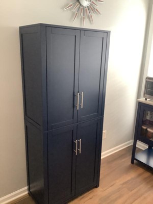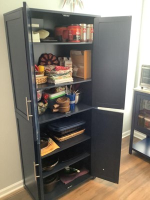 I needed kitchen storage and I liked the clean lines and navy blue color. I have CROSLEY Landon end tables, a Landon console table and a Landon bookcase. Based on my experiences with these pieces I ordered the Savannah Kitchen Pantry. The shelves are large, the unit is well designed and assembly was easy and straightforward.