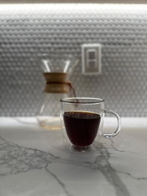 [This review was collected as part of a promotion.] Very cute double wall mugs. I love that I can see my coffee in the cup. The double wall makes it nice that it doesn’t feel hot to the touch on the outside. Great quality
