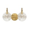 Collection: Addison, Material: Metal, Finish Color: Warm Brass, Width: 16", Height: 9", Depth: 6.5", Backplate Width: 5.125", Backplate Length: 5.125", Lamping Type: Incandescent, Number Of Bulbs: 2, Wattage: 60 Watts, Dimmable: Yes, Moisture Rating: Damp Rated, Desc: It is often said that lighting is the jewelry of the home. With its fun hook-style arms that hold flat, round, starburst clear glass shades, the Savoy House Addison 2-light bath light is a great example of this saying. The backplate is finished in Chrome and mimics the shape of the glass shades. Addison is 9" in height, 16" in width and extends 6.5" from the wall. Uses two candelabra size bulbs of up to 60 watts per bulb. Bulbs not included. This bath bar is damp area rated and must be installed as shown.,