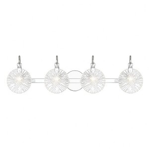 Collection: Addison, Material: Metal, Finish Color: Polished Chrome, Width: 32", Height: 9", Depth: 6.5", Backplate Width: 5.125", Backplate Length: 5.125", Lamping Type: Incandescent, Number Of Bulbs: 4, Wattage: 60 Watts, Dimmable: Yes, Moisture Rating: Damp Rated, Desc: It is often said that lighting is the jewelry of the home. With its fun hook-style arms that hold flat, round, starburst clear glass shades, the Savoy House Addison 4-light bath light is a great example of this saying. The backplate is finished in Chrome and mimics the shape of the glass shades. Addison is 9" in height, 32" in width and extends 6.5" from the wall. Uses four candelabra size bulbs of up to 60 watts per bulb. Bulbs not included. This bath bar is damp area rated and must be installed as shown.,