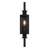 Collection: Ascott, Material: Metal, Finish Color: Matte Black, Width: 4.5", Height: 21.5", Depth: 6.25", Backplate Width: 4.5", Backplate Length: 8.5", Lamping Type: Incandescent, Number Of Bulbs: 1, Wattage: 60 Watts, Dimmable: Yes, Moisture Rating: Wet Rated, Desc: The Savoy House Ascott 1-light outdoor wall lantern is a standout source of cool contemporary lighting style for great first impressions. Sleek and slender, Ascott features a center-mounted light inside panes of clear seeded glass in a sharply angled frame. Matte Black finish. Ascott is 21.5" in height, 4.5" in width and extends 6.25" from the wall. Uses one candelabra size bulb of up to 60 watts. The bulb is not included. Wet area rated.,