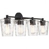 Add a hint of nature-inspired style to your bathroom with the Savoy House Ballas 4-light bath vanity light. Clear hammered glass shades give a watery effect for extra intrigue and dimension. Black finish. Ballas is 9.75" in height, 31.5" in width and extends 6.5" from the wall. It uses 4 standard size bulbs of up to 60 watts per bulb (bulbs not included).