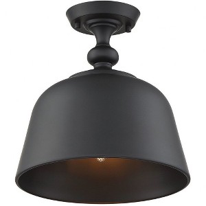 From Savoy House, this Berg 1-light ceiling semi-flush mount is a perfect blend of industrial style and traditional allure. It showcases an oversized metal shade that is finished in matte black, both inside and out, for a bright and focused glow. Above the shade, hardware details recall the curves of an elegant candlestick. Berg is perfect for times when you would like a more directed beam of light, such as in a small entryway or a kitchen. This fixture is 12" in width and 12" in height. Uses one standard size light bulb of up to 60 watts (not included).