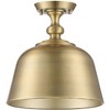 From Savoy House, this Berg 1-light ceiling semi-flush mount is a perfect blend of industrial style and traditional allure. It showcases an oversized metal shade that is finished in warm brass, both inside and out, for a bright and focused glow. Above the shade, hardware details recall the curves of an elegant candlestick. Berg is perfect for times when you would like a more directed beam of light, such as in a small entryway or a kitchen. This fixture is 12" in width and 12" in height. Uses one standard size light bulb of up to 60 watts (not included).