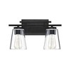 Brighten up your bathroom vanity with the sleek look of the Savoy House Calhoun 2-light bath bar. Its tapered clear glass shades and matte black finish make a perfect match. It may be mounted as either uplight or downlight. Bath bar lights are a classic choice for illuminating vanity mirrors in bathrooms big and small. Because the bulbs are exposed, try using stylized bulbs (not included) such as Edison for a different look! The matte black finish can be paired with black hardware or mixed with hardware in other fixtures. Calhoun is a smart choice for improving the lighting and look of any bathroom. When you choose a Savoy House lighting fixture, you can be certain you’ve selected a piece that will withstand the test of time.