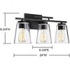 Brighten up your bathroom vanity with the sleek look of the Savoy House Calhoun 3-light bath bar. Its tapered clear glass shades and matte black finish make a perfect match. It may be mounted as either uplight or downlight. Bath bar lights are a classic choice for illuminating vanity mirrors in bathrooms big and small. Because the bulbs are exposed, try using stylized bulbs (not included) such as Edison for a different look! The matte black finish can be paired with black hardware or mixed with hardware in other fixtures. Calhoun is a smart choice for improving the lighting and look of any bathroom. When you choose a Savoy House lighting fixture, you can be certain you’ve selected a piece that will withstand the test of time.