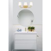 Add chic style to any bathroom with the Savoy House Capra 3-light bath bar. Its substantial structure features classic details along with white opal glass shades that are tapered like lamp shades and open at the top to give off a flattering glow. The large oval-shaped backplate helps to cover up any holes left behind from replacing old bath bars, too. Plus, the hardware for this fixture has been thoughtfully moved to the side of the backplate, allowing for a crisp and clean look. Finished in warm brass. This fixture is 22" wide and 9" tall. It extends 6.5" from the wall.