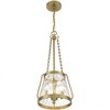 The Savoy House Crawford 3-light pendant proves that a classic style can be stunning! A lantern-inspired shade of clear water glass hangs down from an understated structure with industrial-inspired details. Finished in warm brass. Crawford is 25.50” in height and 12” in width. It uses 3 candelabra size bulbs of up to 60 watts per bulb (bulbs not included).