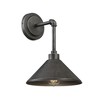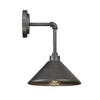The Dansk takes its cue from old factories: an industrial-inspired design is solid and practical, yet streamlined and stylish for today’s decor. This sconce has pipe-like detailing, round wall plate, and a clean lined, funnel-shaped shade —all with a neutral-colored, galvanized metal finish. One 60W, E-style bulb provides ample illumination and using an exposed filament or Edison bulb will add to the vintage, utilitarian appeal. This fixture is 8” wide, 13” high, and extends 10” from the wall. It’s perfect for understated, industrial style in your kitchen, dining area, family room, entryway, great room, bedroom, game room, office, or hallway. And it’s UL rated for damp locations, so may be used in your bathroom or powder room, too.
