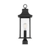 Create a stylish first impression outside your home with this Savoy House Hancock 1-light outdoor post mount lantern. Crafted in a timeless classic style, it features a boldly sloped roof, a large circular chain link and panes of clear seeded glass that ensures a beautiful, dramatic glow. The versatile black finish means that Hancock goes well with anything. Use this post light to mark the start of your driveway, to illuminate stairs outside your home, to brighten up outdoor living spaces and more. This fixture is 8.5" wide and 24.25" tall. It fits posts and pier mounts that are 3" in diameter. Uses a standard size bulb of up to 60 watts (not included).