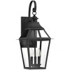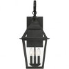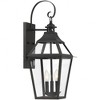 This Savoy House Jackson 3-light outdoor wall lantern is the perfect way to easily boost your home’s curb appeal. It is crafted in a classic, timeless style with boldly angled curves, eye-catching pierced metal detail and a dramatic shepherd’s hook. Panes of clear glass ensure a bright, beautiful glow and a generously sized backplate will help to cover any holes left from replacing previous fixtures. Jackson is finished in black with gold highlights to go well with anything and add a touch of glamour. Use this lantern beside your front and side doors or above your garage door. This fixture is 10.88" wide and 25.5" tall. It extends 11.75" from the wall. Uses 3 candelabra size bulbs of up to 40 watts each (not included).